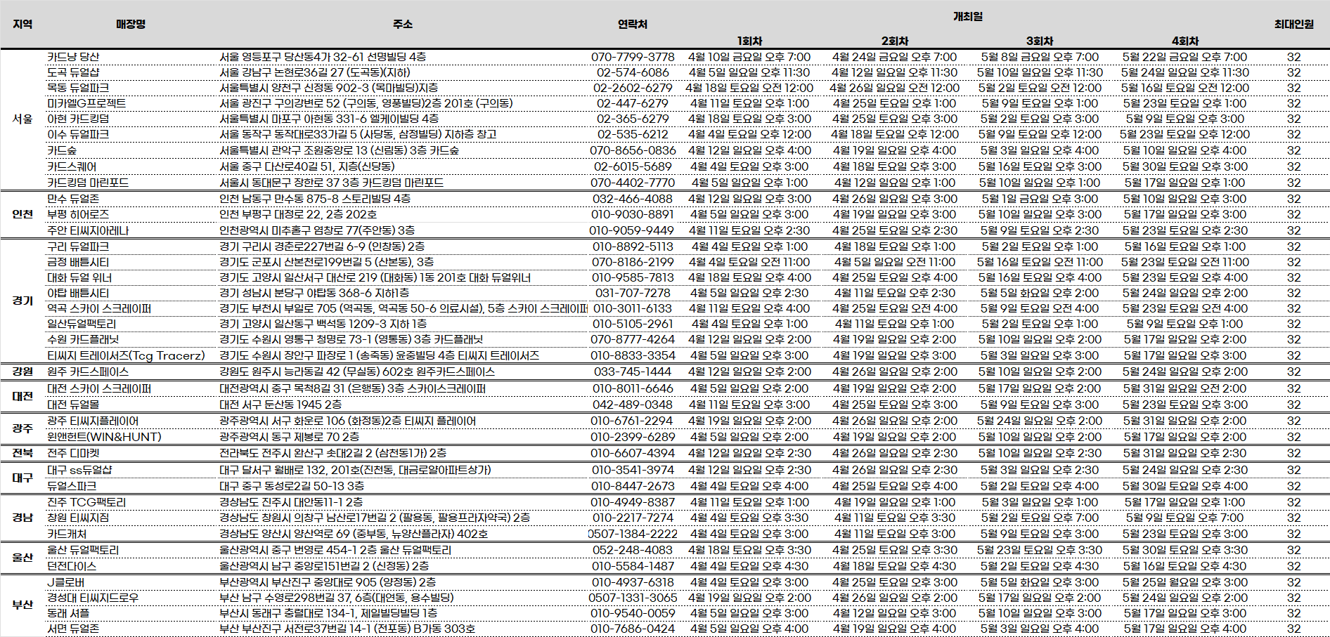※ 구체적인 시간 등 자세한 사항에 대해서는 진행 매장에 문의 및 매장 자체적으로 게시하는 공지를 확인 바랍니다.■ 대회 일정 : 2025년 7월 26일(토) ~ 2025년 9월 28일(일) 총 4회■ 대회 진행 방식: 단판 토너먼트■ ...