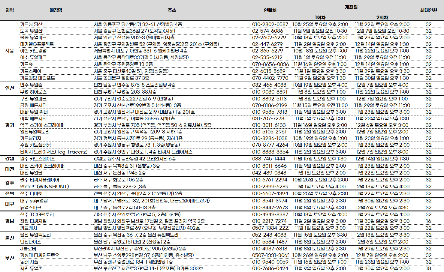 ■ 대회 일정 및 장소(10월-12월 중 각 매장별 최대 2회 개최)